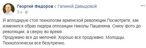 Заканчивается статья не менее патетически: "Есть надежда, что люди пойдут за Пашиняном до полной победы объявленной им "бархатной революции"".