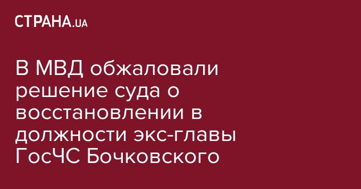 Министерство внутренних дел обжаловало решение Окружного админсуда Киева о восстановлении бывшего главы Госслужбы по чрезвычайным ситуациям Сергея Бочковского в должности.