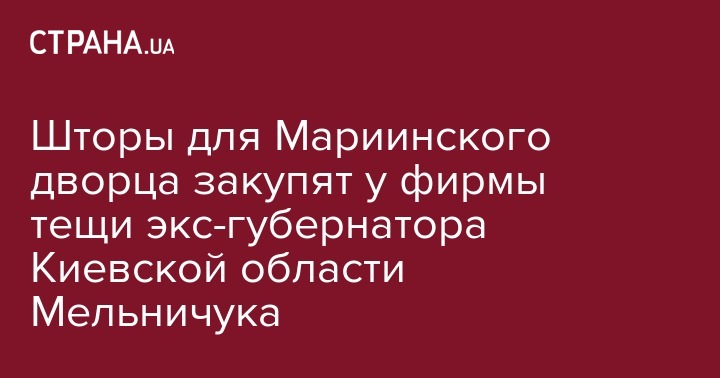 Государственное управление делами договорилось о закупке штор для Мариинского дворца в Киеве на сумму 7,6 млн гривен у ООО "Фирма "Калина", принадлежащей теще бывшего председателя Киевской областной государственной администрации (февраль - сентябрь 2016) Максима Мельничука.