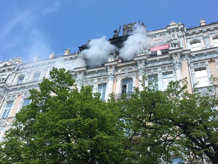 В Киеве пожарные погасили огонь в доме Гинзбурга по ул. Городецкого, 9.