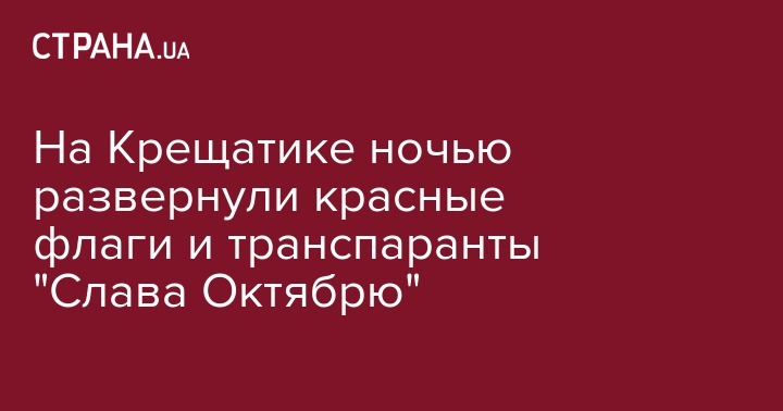На Крещатике ночью развернули красные флаги и транспаранты "Слава Октябрю"