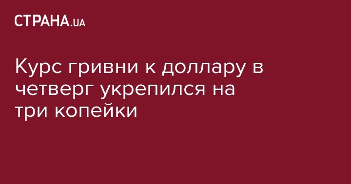 Курс гривни к доллару в четверг укрепился на три копейки