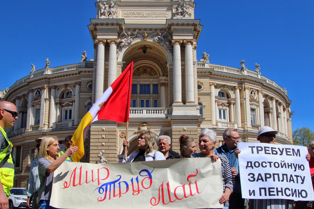 Митинг проходил возле Оперного театра. Его участники потребовали вернуть восьмичасовой рабочий день, бесплатную медицину и высокие пенсии. В это время приглашенный оркестр играл одесские мотивы. Запрещенной в Украине символики на митинге не было.
