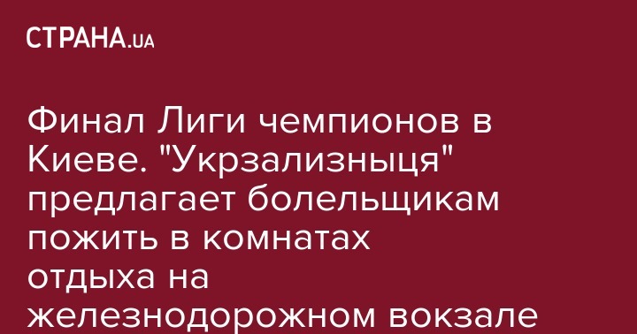 ПАО "Укрзализныця" предлагает болельщикам Лиги чемпионов, которые приедут в Киев 26 мая на матч с участием английского "Ливерпуля" и испанского "Реала", арендовать комнаты отдыха на железнодорожном вокзале Киева.