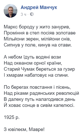 А журналист Андрей Манчук опубликовал украиноязычный стих о Марксе, написанный в 20-х годах ХХ века.