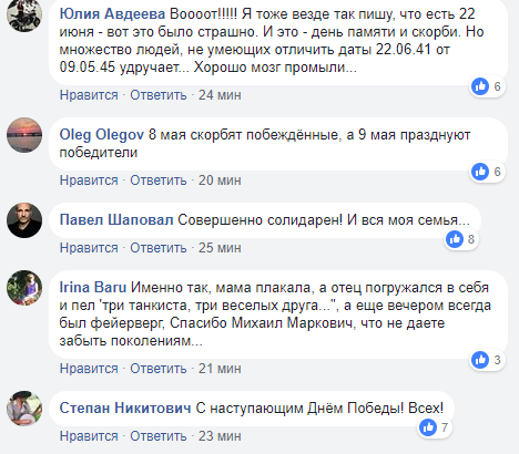 Сегодня, 8 мая, когда в Украине третий год подряд отмечают День памяти и примирения, в соцсети не все поддерживают относительно новую традицию, установленную правительством в 2015 году.