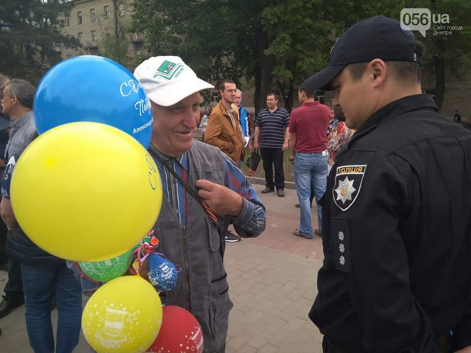 В Днепре официальные мероприятия прошли без особых происшествий. Марш "Союза офицеров и бессмертного полка" ввязался в стычку с полицией, но задержанных в результате конфликта нет. несколько человек были в запрещенных георгиевских лентах, которые их попросили снять.