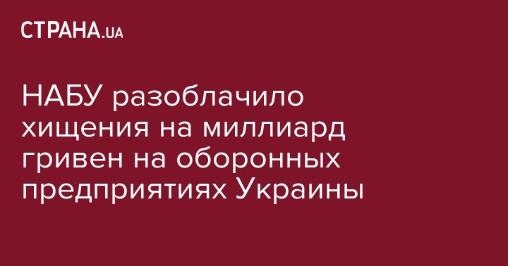 Национальное антикоррупционное бюро Украины (НАБУ) разоблачило коррупционные схемы в оборонно-промышленном комплексе на более чем 1 млрд гривен. Об этом сообщает пресс-служба бюро.