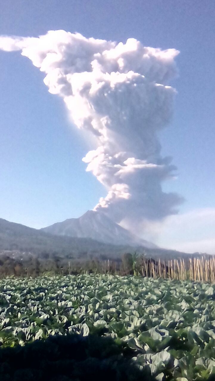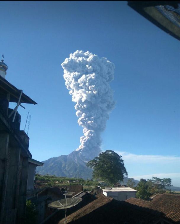 Вулкан выбросил столб пепла на высоту в 5,5 км. Пресс-секретарь индонезийского управления по ликвидации последствий стихийных бедствий Сутопо Пурво Нугрохо сообщил, что извержение началось неожиданно для вулканологов.