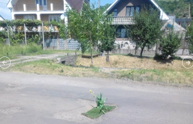 В Закарпатской области, в незаасфальтированные ямы на дороге, жители начали высаживать цветы.