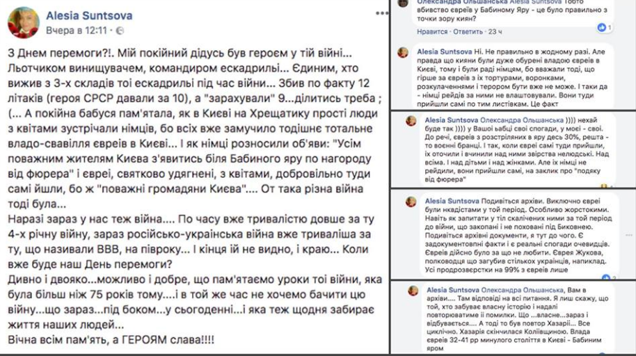 Заведующая кафедрой экономики Национального авиационного университета, академик Академии экономических наук Украины Олеся Сунцова опубликовала антисемитский пост в Facebook.