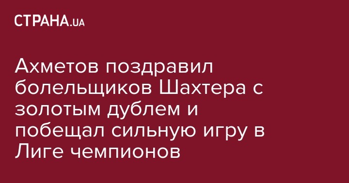 Президент клуба Ринат Ахметов уже поздравил фанов команды с золотым дублем и пообещал достойно выступить в еврокубке, передает официальный сайт "Шахтера".