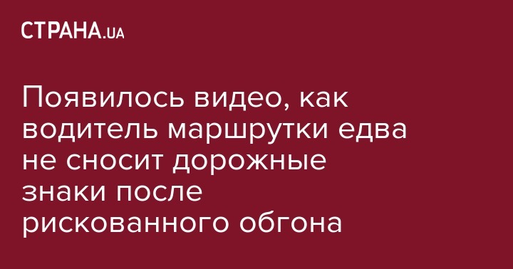 Появилось видео, как водитель маршрутки едва не сносит дорожные знаки после рискованного обгона
