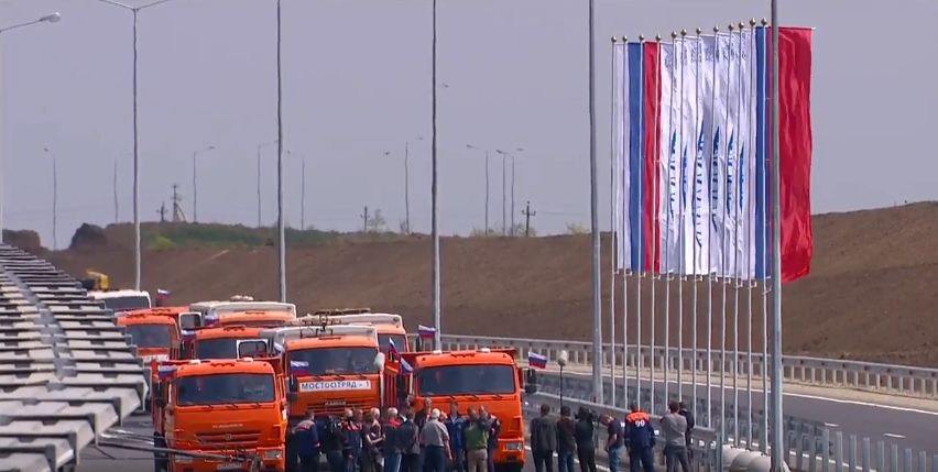 15 мая Россия провела церемонию открытия Крымского моста, который связывает аннексированный полуостров с побережьем России. Во вторник президент РФ Владимир Путин проехал на "Камазе" вместе с колонной строителей, а в среду 16 мая 5:30 утра по мосту открылось автомобильное движение.