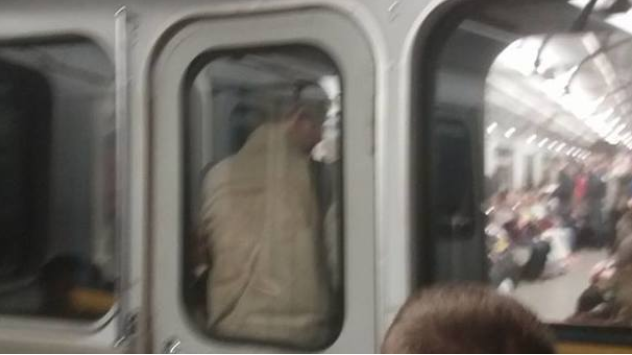 Во вторник, 15 мая, на синей ветке киевского метро пассажиры наблюдали очередного зацепера, который катался между вагонами подземки.