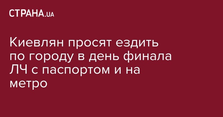 В субботу, 26 мая, когда в Киеве будет проводиться финал мужской Лиги чемпионов УЕФА, киевлянам и гостям города стоит отказаться от использования собственного транспорта для передвижения по центру столицы. Такую рекомендацию дал один из организаторов - менеджер по транспорту и мобильности Сергей Хижняк, сообщает Укринформ.