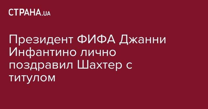 "Шахтер" - чемпион Украины сезона-2017/18. С огромным удовольствием поздравляю клуб с 11-м чемпионским титулом в его истории! Этот трофей - результат целеустремленности всех непосредственных участников. Поздравляю игроков, главного тренера, руководство, технический и медицинский штаб, а также болельщиков с этим большим достижением. От имени всего футбольного сообщества я хочу поблагодарить "Шахтер" и за помощь в распространении позитивного месседжа футбола", - говорится в телеграмме.