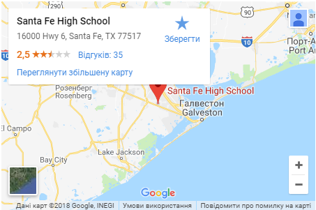 Комиссар округа Галвестон - Джо Джусти сообщил, что нападавший открыл огонь в школе примерно в 7:45 утра, т.е. когда в школе собиралась начать день. Он сказал, что раненый офицер работал в школьном округе Санта-Фе в качестве сотрудника по школьным ресурсам.