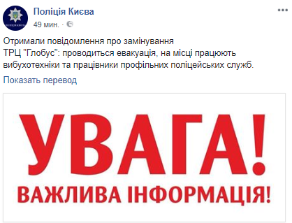 В Киеве эвакуировали сотрудников и посетителей ТРЦ "Глобус"