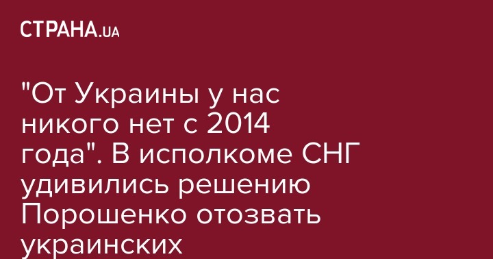 Руководство СНГ отреагировало на заявление президента Петра Порошенко про отзыв всех представителей Украины из всех уставных органов Содружества независимых государств. Такое заявление расценили, как пустое, поскольку представителей Украины в исполкоме СНГ нет уже несколько лет.