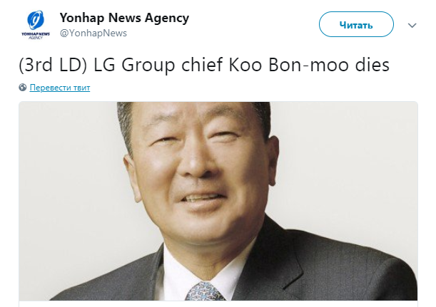 В Южной Корее в возрасте 73 лет умер глава группы компаний LG Group Ку Бон Му.