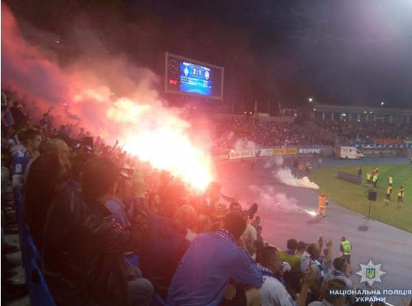 При этом в полиции заявили, что фанаты "Динамо" во время игры применили петарды и файера.