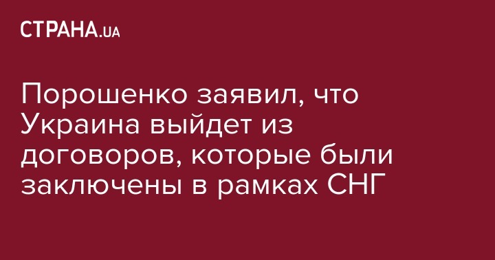 Украина выйдет из международных договоров, которые были заключены в рамках Содружества независимых государств. Об этом заявил президент Украины Петр Порошенко, который ранее заявил об отзыве представителей Украины из СНГ.