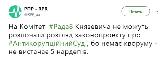 не сразу смог приступить к рассмотрению законопроекта об Антикорупционном суде. Комитету не хватило кворума -  5 народных депутатов.