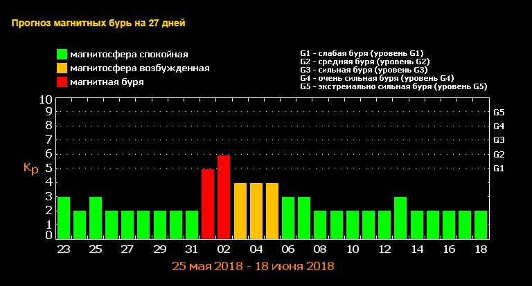 Так, слабая магнитная буря достигнет Земли 1 июня. А поднимется она до уровня G2 на следующий день, 2-го числа.