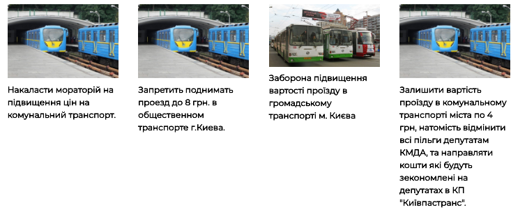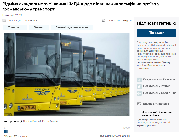 В другом обращении предлагается "отменить все льготы депутатам КГГА, и направлять сэкономленные средства в КП "Киевпастранс".