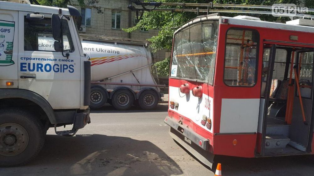 Троллейбус, высадив пассажиров на остановке "Адмиральская", начал двигаться дальше, в сторону Ингульского моста. В этот момент в него сзади на скорости врезался грузовик.