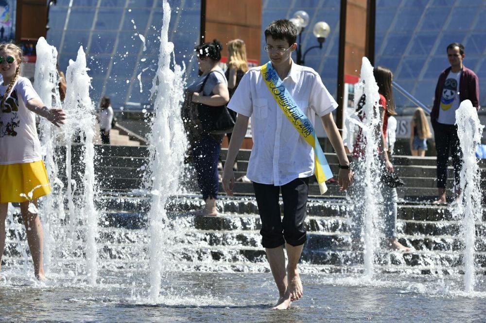 Выпускники, которые закончили 11 класс, по негласной традиции после школьной линейки идут нарядные в центр города и купаются в фонтанах, фото: Аркадий Манн, "Страна"