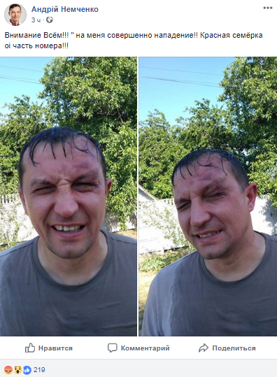 "Внимание всем! На меня совершено нападение! Красная "семерка", OI - часть номера", - написал Немченко.