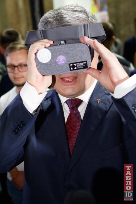 Кроме того, Порошенко "заглянул в будущее" при помощи виртуальной реальности и пообщался с детьми, пришедшими на выставку.