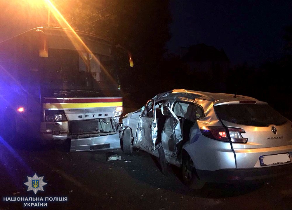 41-летний житель Ровно, управляя автомобилем "Renault Megane", совершая маневр разворота через двойную сплошную линию разметки, выехал на полосу встречного движения, где столкнулся с автобусом "Setra" сообщением "Киев-Львов".