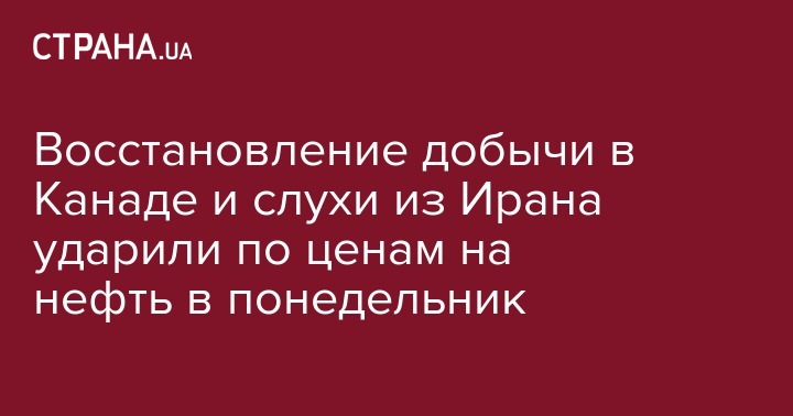 Восстановление добычи в Канаде и слухи из Ирана ударили по ценам на нефть в понедельник