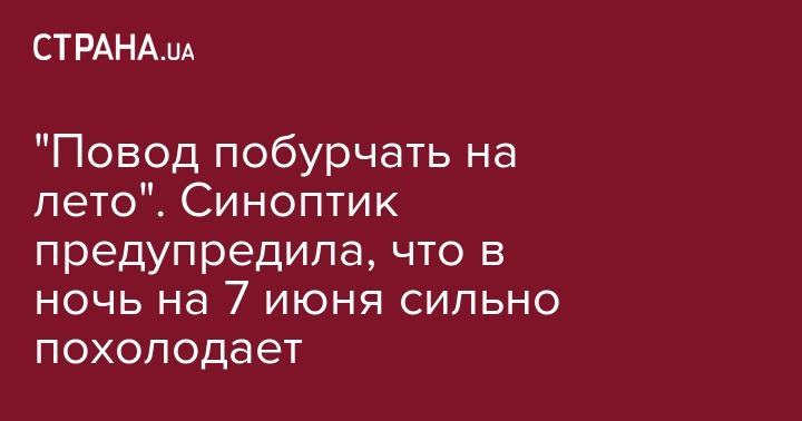 "Повод побурчать на лето". Синоптик предупредила, что в ночь на 7 июня сильно похолодает