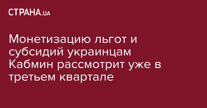 Монетизацию льгот и субсидий украинцам Кабмин рассмотрит уже в третьем квартале