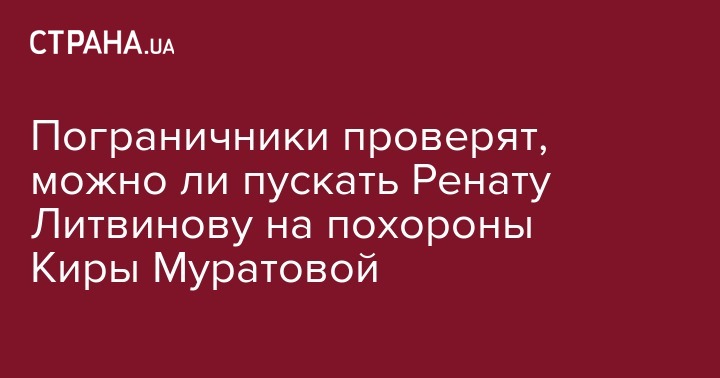 Украинские пограничники проверят, нарушала ли российская актриса Рената Литвинова украинское законодательство и на основании этого решат, пускать ли ее на территорию Украины, чтобы она смогла проститься с режиссером Кирой Муратовой.