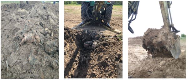 После обнаружения нескольких стихийных свалок, расположенных прямо посреди поля, и огласки в СМИ владельцы предприятия попытались уничтожить отходы.