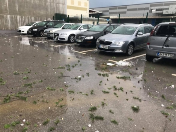 В Словении град размером с теннисный мяч побил авто и крыши домов. Фото