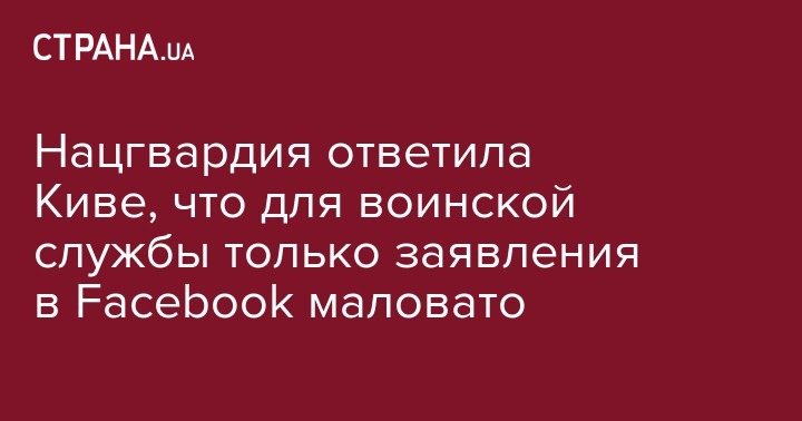 "В настоящее время официального заявления с просьбой принять на службу в Нацгвардию от Ильи Кивы не поступало. Фото заявления в Facebook не является основанием для начала процедуры приема на службу", - сказал Вадим Голуб.