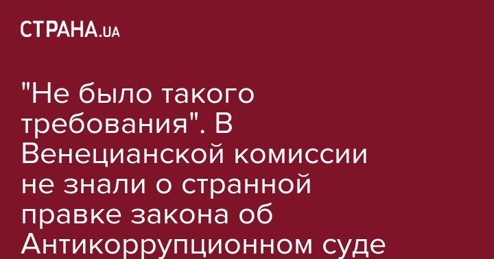 "Со стороны Венецианской комиссии не было такого требования", - заявил он, комментируя информацию о данной норме, появившуюся в среду в украинских изданиях.