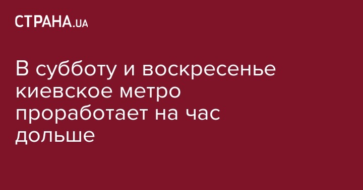 Киевское метро в предстоящие выходные - субботу и воскресенье 16 и 17 июня - будет работать на час дольше. Об этом сообщает пресс-служба столичной подземки на своей странице в соцсети.
