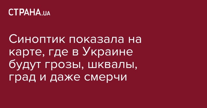 Синоптик показала на карте, где в Украине будут грозы, шквалы, град и даже смерчи