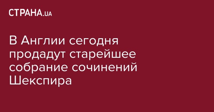 В Англии сегодня продадут старейшее собрание сочинений Шекспира