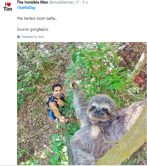 Не забывают пользователи и о забавных селфи с животными. Например, как с эти ленивцем.