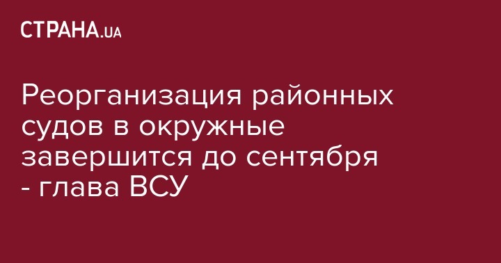 Глава Верховного Суда Валентина Данишевская заявила, что реорганизация районных судов в Украине завершится до сентября.