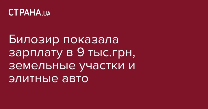 Билозир показала зарплату в 9 тыс.грн, земельные участки и элитные авто