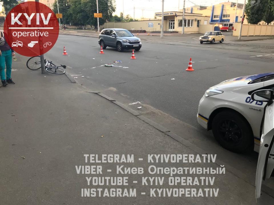 По информации очевидцев, мужчина на велосипеде двигался в сторону Подола и на перекрестке с улицей Терехина его подрезал неизвестный автомобиль.